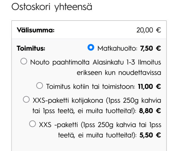 niin ei tule toimituskulua tuplana.