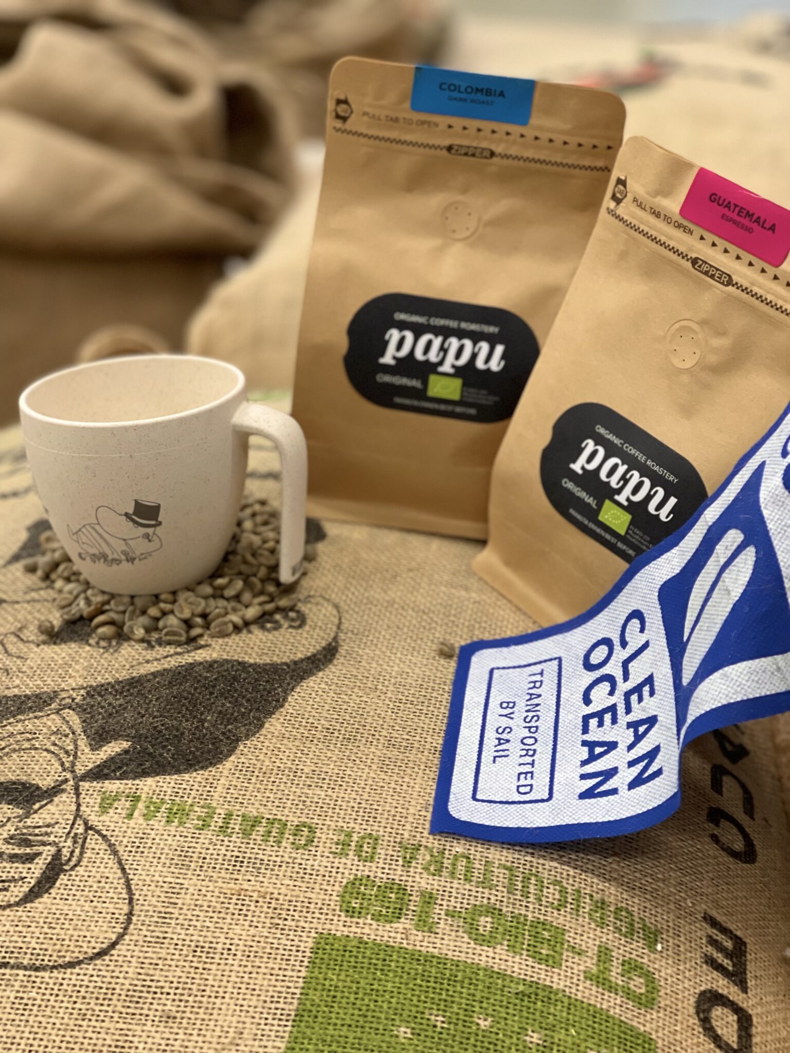 Suosittelemme tietenkin erittäin ympäristöystävällisesti rahdattujen ”~ by Sail” kahveja